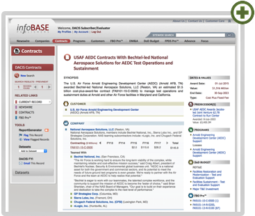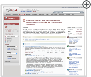 A hallmark of the tens of thousands of records in DACIS Contracts is thorough, qualitative write-ups. We've integrated these records with several U.S. government databases—the Federal Procurement Data System (FPDS), the beta.SAM.gov Contract Opportunities service (formerly FedBizOpps), System for Award Management (SAM) and the DoD Budget—all of which we've integrated into DACIS.
